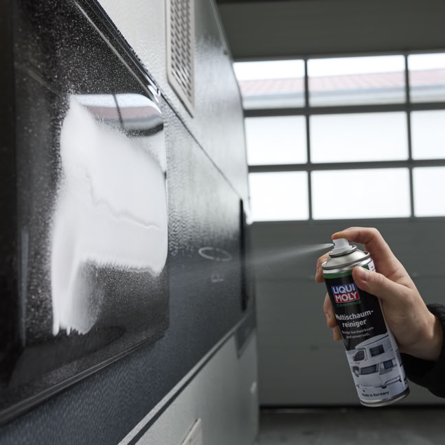 Das Multitalent zur effektiven und schonenden Reinigung aller gängigen Materialien im Innen- und Außenbereich beim Camping. Säubert dank hochwirksamer Aktivformel mühelos glatte, lackierte oder folierte Oberflächen, ohne Streifen oder Schlieren zu hinterlassen. Aufgrund seines gut haftenden Schaums auch optimal für senkrechte Flächen und hartnäckige Verschmutzungen geeignet. Für glatte, lackierte und folierte Oberflächen aus Aluminium, Kunststoff, Glas, GFK, Polycarbonat, Edelstahl und Gummi im Innen- und Außenbereich.