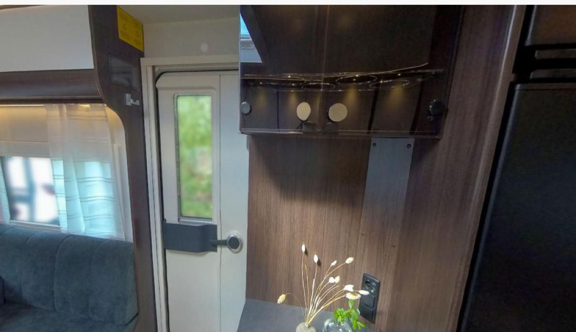 Die Größe 560 ist ideal für zwei Personen, die einen mittelgroßen Wohnwagen mit ausreichend Stauraum und einer großzügigen Küche suchen. Die gemütliche Sitzgruppe kann bei Bedarf jederzeit in ein zusätzliches Bett umgewandelt werden.