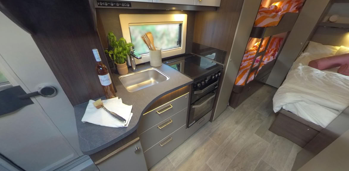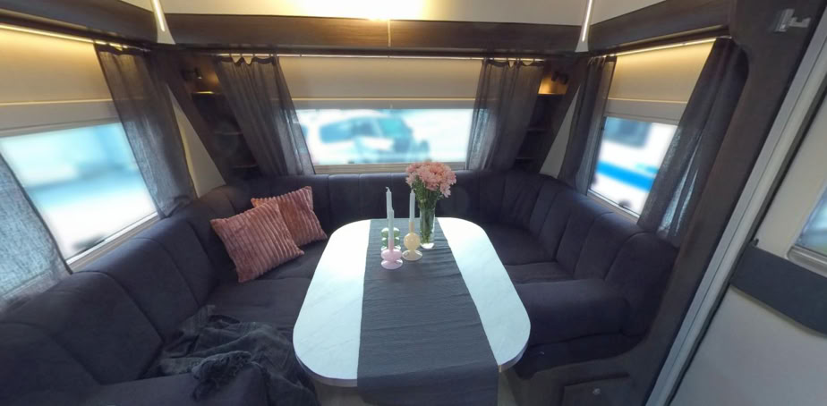 Der Blackline 590 ist ein flexibler Wohnwagen, der sich ganz nach Ihren Bedürfnissen richtet. Seine Größe macht ihn perfekt für Reisen mit vielen Zwischenstopps. Zu zweit genießen Sie einen besonders großzügigen Wohnbereich, während ein alternativer Grundriss Platz für bis zu fünf Personen bietet – ideal für Familien. Besonders beliebt ist die Kinderzimmerlösung mit Etagenbett, das für die Kleinen zu einem gemütlichen Rückzugsort wird.