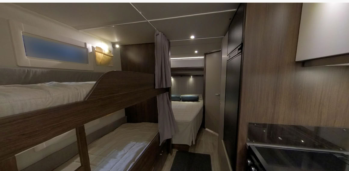 Im größten einachsigen Polar-Wohnwagen, dem Blueline 650, finden Sie ausreichend Platz für die ganze Familie. Familien mit Kindern profitieren von der Möglichkeit, einen separaten Kinderbereich mit Etagenbett zu integrieren. Alternativ steht Ihnen ein luxuriös geräumiges Badezimmer über die gesamte Breite des Wohnwagens zur Verfügung.