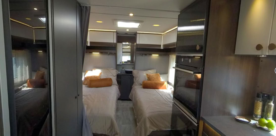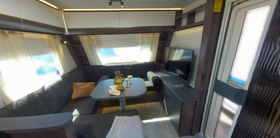 Der Chimera 730 ist ein Wohnwagen jenseits des Gewöhnlichen. Hier sprechen wir von grenzenlosem Urlaubsluxus für den anspruchsvollen Kunden. Der 730 hat, genau wie der 590, eine stilvolle und bequeme Loungegruppe sowie eine breitere Eingangstür als andere Wohnwagen. Drei verschiedene Grundrisse, die einzigartig für den 730 sind. Geräumige Küche, Doppelkühlschrank und sogar ein Weinkühlschrank als eine von mehreren Optionen.