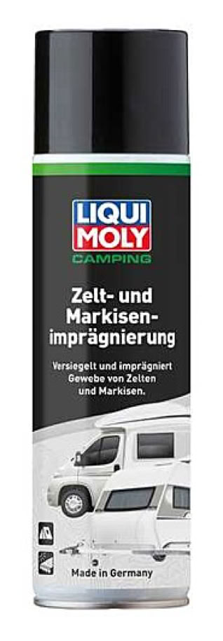 Versiegelt und imprägniert handelsübliche Gewebe von Zelten und Markisen. Eignet sich ideal als universeller Nässe- und Fleckenschutz. Weist Wasser zuverlässig ab und schützt vor Fleckenbildung durch Blütenstaub, Vogelkot u. v. m. Hält das Gewebe geschmeidig und luftdurchlässig.