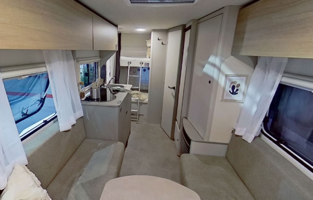 3er-Etagenbett (Belastbarkeit 80 kg) mit jeweils eigenem Fenster