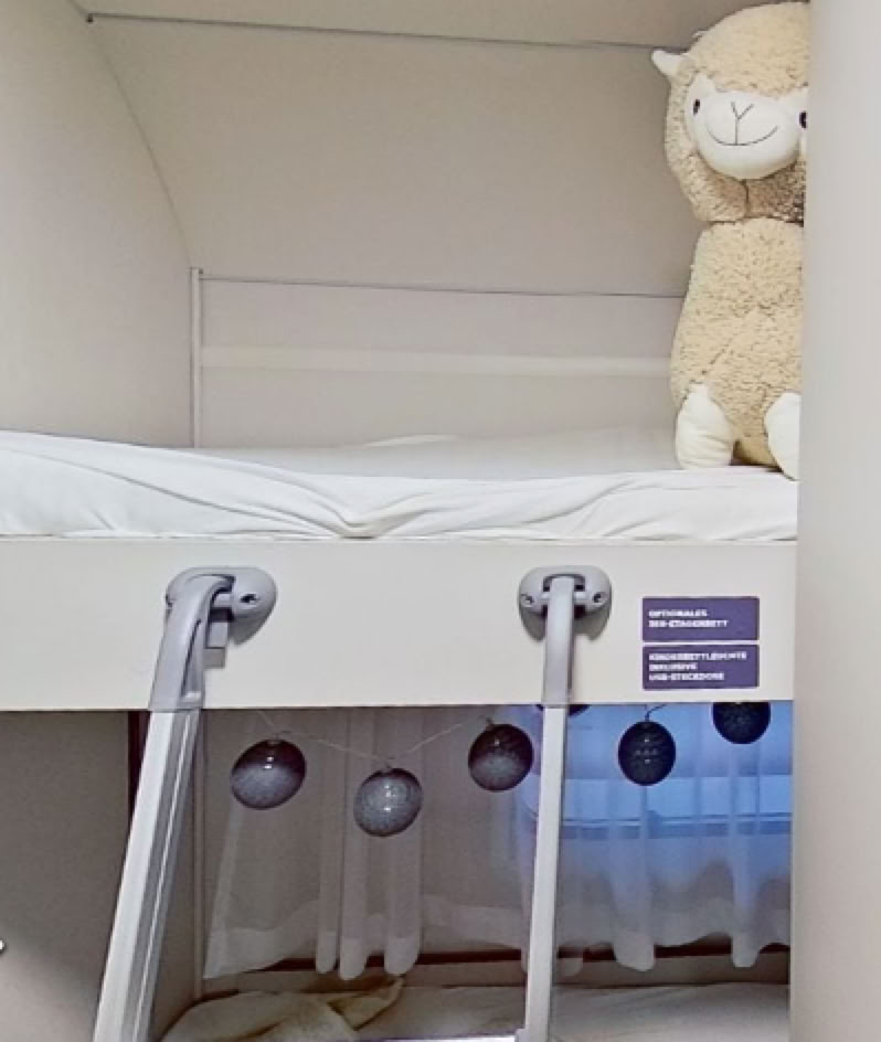Etagenbetten (Belastbarkeit 80 kg) mit jeweils eigenem Fenster